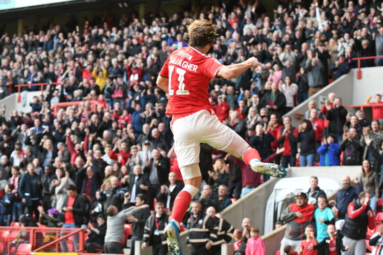 Chelsea loanee Gallagher had excelled in the middle of the park and he capped his display off with a 25-yard curler that looped over Roos and found the top corner. That goal hauled the midfielder level with Lyle Taylor on five for the season.