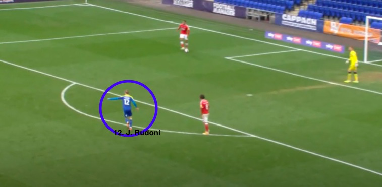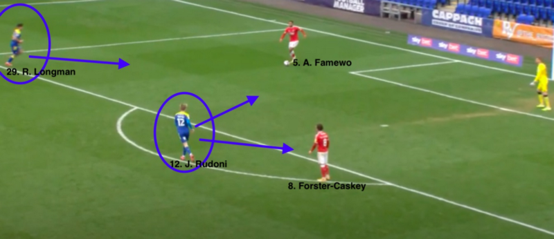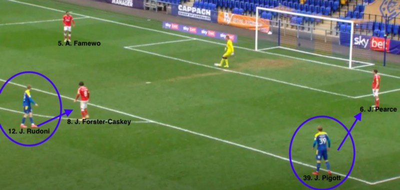 As is clear in the image below, Rudoni, Wimbledon’s number 12, even motions for Longman to press high, the entire team sensing an opportunity as soon as Charlton started to mess with a potentially risky situation.