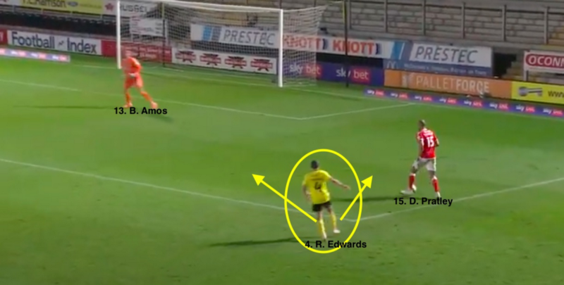 Once again on that occasion, Charlton attempted to play out from the back when it just wasn’t on. Amos’ goal-kick found Pratley to his left, but he immediately had to give the ball back to his keeper with pressure behind him.