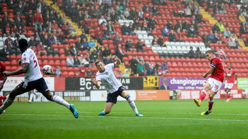 The Addicks’ first goal on 10 minutes came after Thierry Small intercepted a poor pass by Bolton skipper Ricardo Santos. The left wing-back’s pass was slammed home from the edge of the box by Docherty.