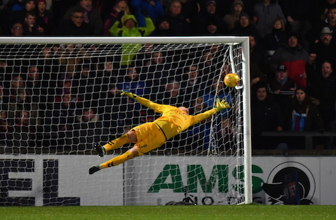 Gilks’ faint touch as Josh Magennis met Ricky Holmes’ perfect centre was enough to divert the centre-forward’s intelligent header on to his left-hand post and away to safety.