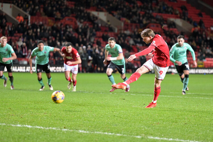 The visitors went ahead in the 10th minute when Will Goodwin headed Liam Sercombe’s cross past Ashley Maynard-Brewer.