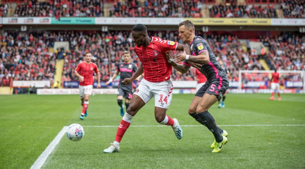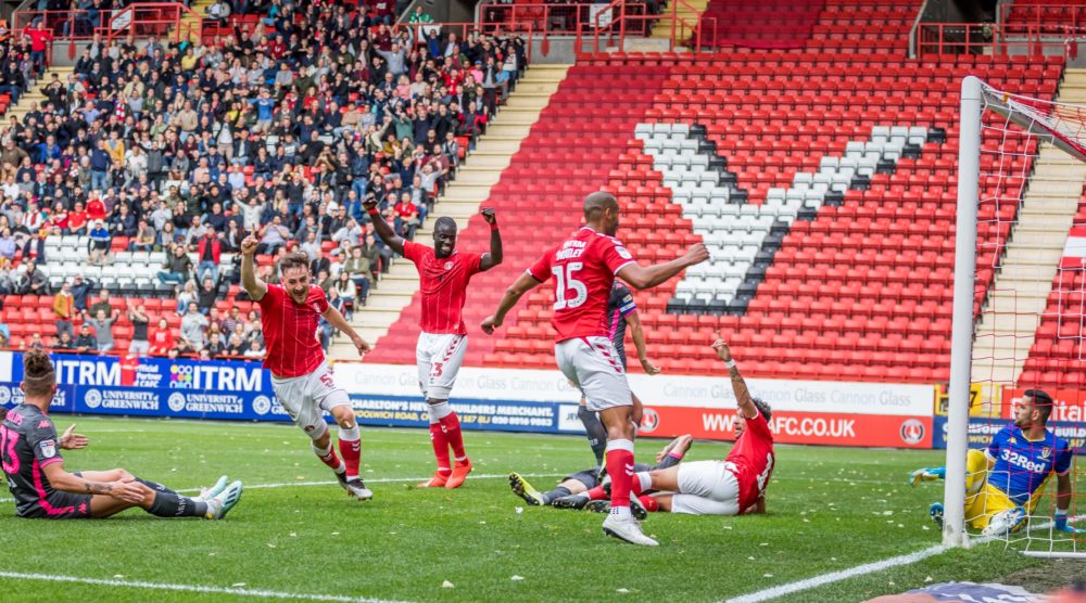 Leeds are back in the Premier League for the first time since 2004. Charlton beat them 1-0 at The Valley in late September with Macauley Bonne (above on the turf) claiming the goal.