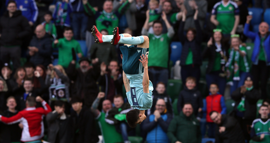 Northern Ireland’s Paul Smyth celebrates scoring his side’s second goal of the game during the international friendly match at Windsor Park, Belfast.