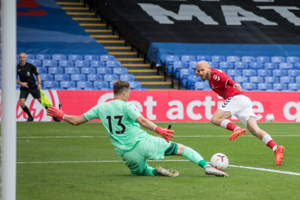 Alfie Doughty’s tame shot did not trouble Palace keeper Wayne Hennessey, who had little to do.