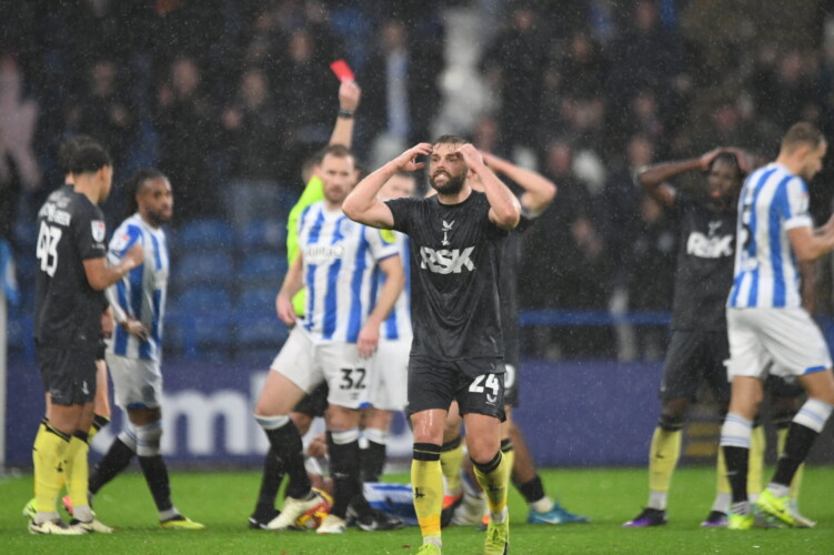 The Addicks skipper was given his marching orders for a challenge on Town’s Nigel Lonwijk eight minutes before the break at the John Smith’s Stadium – moments after Matty Godden had drawn the visitors level from the penalty spot.
