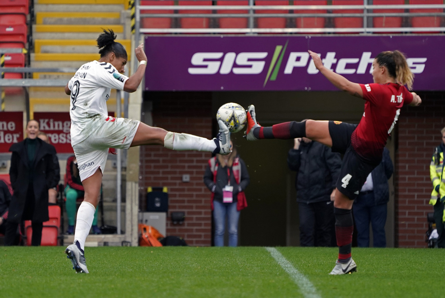 With Charlton rocking United pressed their advantage, as Kirsty Hanson and Sigsworth both forced Addicks keeper Katie Startup into good saves.