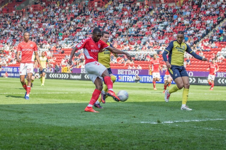 Anfernee Dijksteel celebrates Charlton’s opening goal against Scunthorpe. Paul Edwards