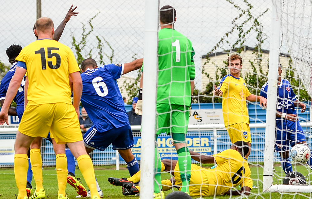 Having had almost nothing to do all game, Welling goalkeeper Dan Wilks was called into action tipping over Danny Green’s free-kick.