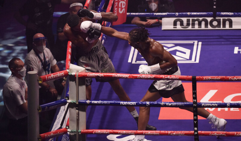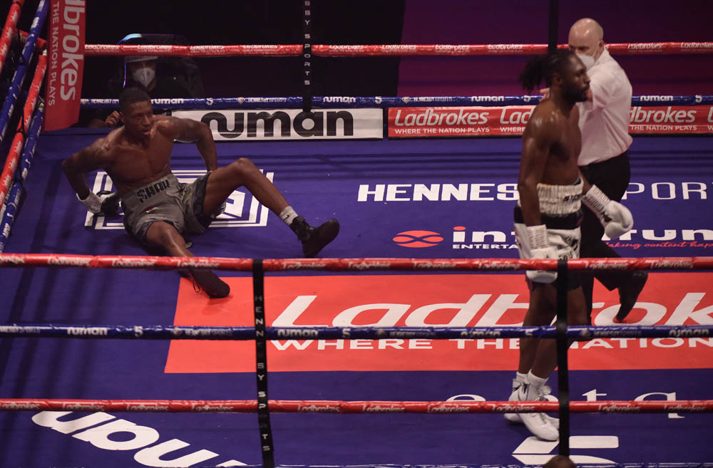 The Crystal Palace puncher, 30, produced a huge left hook in the ninth round to floor Shakan Pitters for the second time – referee Victor Loughlin waving the contest over.