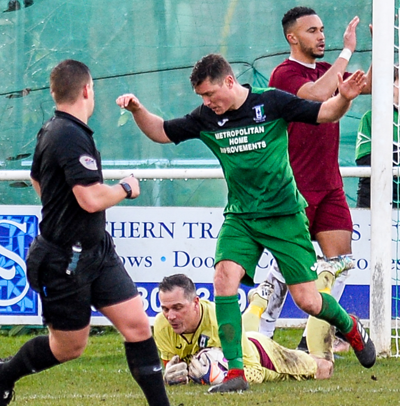Canterbury goalkeeper Jack Delo saved from Ashley Sains before making a stunning double stop from Gavin Tomlin.