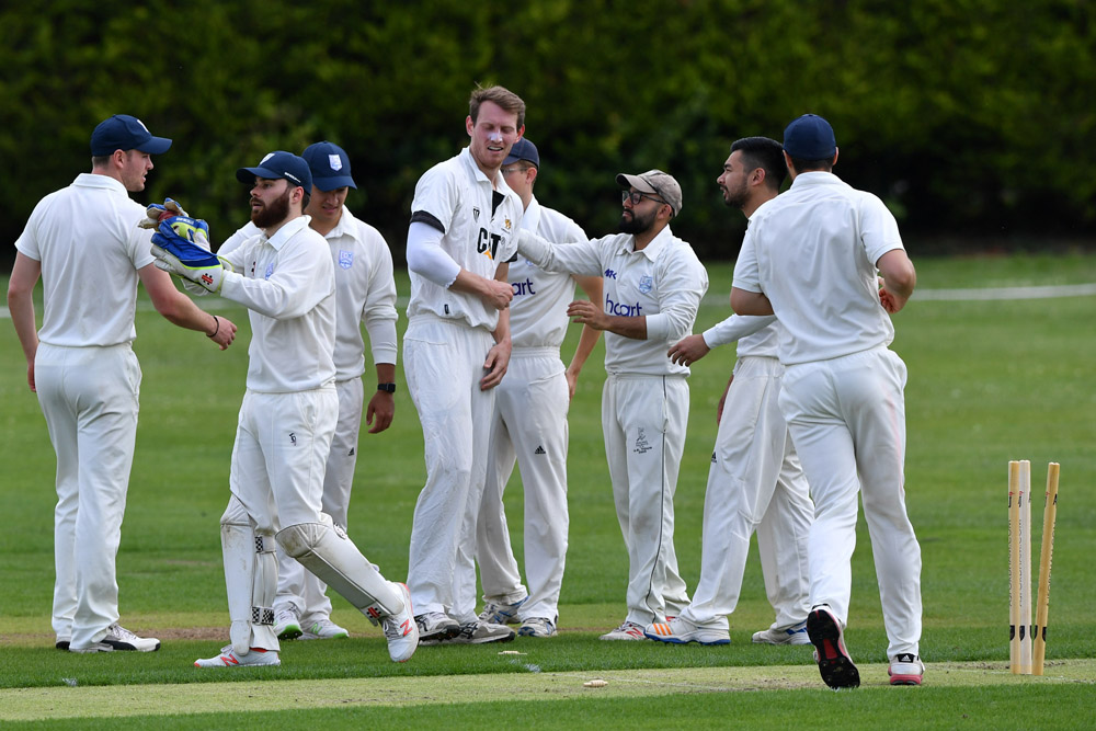 Dulwich had collapsed in 15 overs to an identical score of 23-5, with Goldsworthy bowling 13 overs straight through to take 3-19, while Lloyd had 2-21 off 10. Keeper Robbie Catling (with 18) and George Pearson (15) resisted with a stand of 35 in 14 overs for the sixth wicket before they were both bowled by Nathan Thorpe in the same over.