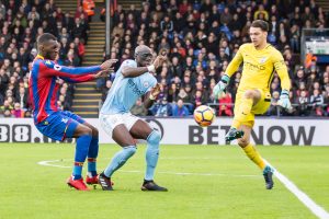 Palace hunted in packs, surrounding City’s attacking players whenever they got into dangerous positions. And even the loss of Scott Dann – with a suspected major knee injury as he fouled Kevin De Bruyne on the edge of home penalty area – did not weaken their defensive resilience.