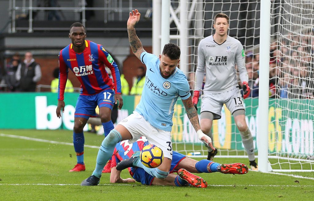 Sergio Aguero hit the left post in the 29th minute, his shot clipping off the heel of Jairo Riedewald and came back off the left post with Wayne Hennessey stranded.