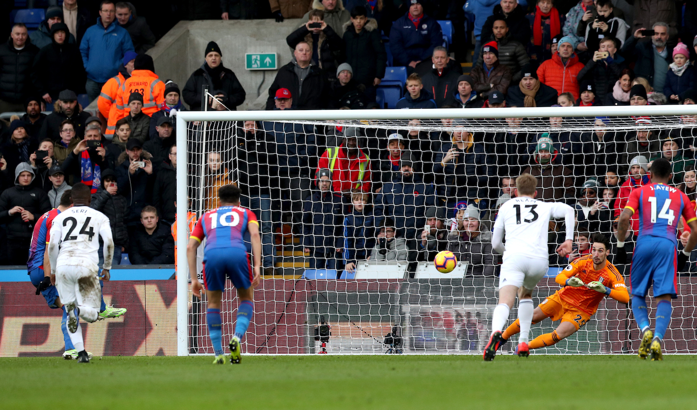 Palace went ahead from the penalty spot when Cyrus Christie inexplicably handled in the area from a deep cross with Christian Benteke nearby, and Milivojevic fired past Sergio Rico.