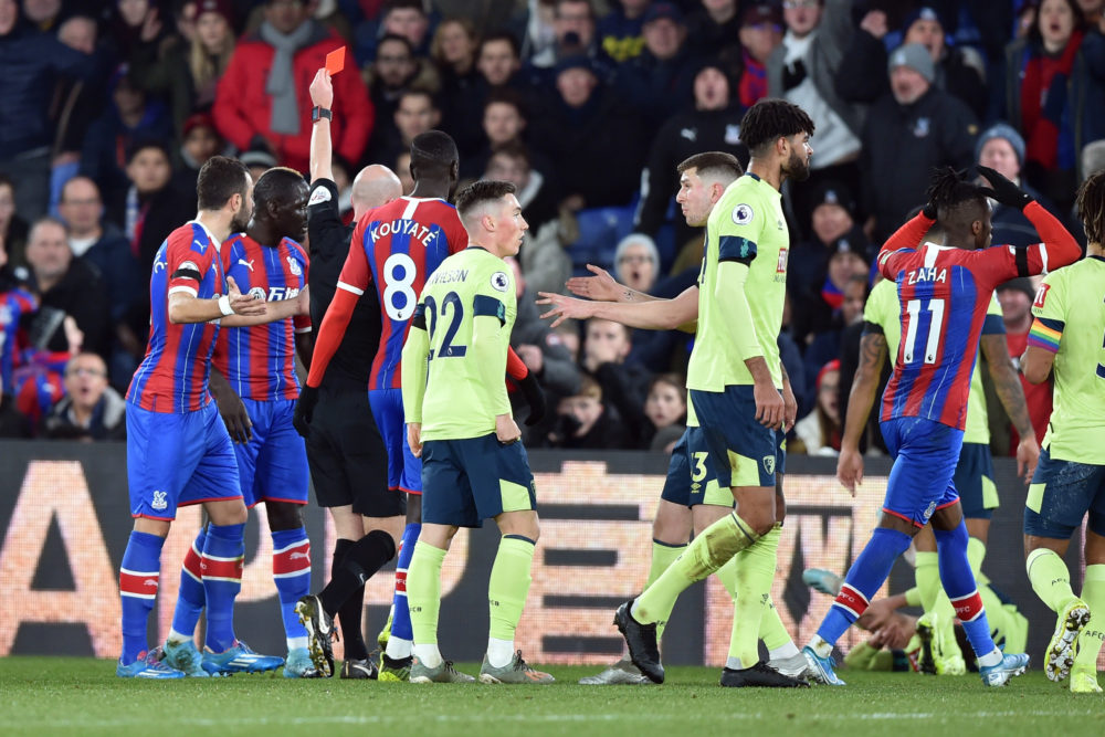 Mamadou Sakho was shown a straight red card for a high challenge on Adam Smith in the opening exchanges but substitute Jeffrey Schlupp netted for the second Premier League match in succession as the Eagles made it back-to-back Premier League victories.