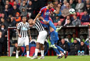 Crystal Palace’s Luka Milivojevic (centre top) battles for the ball with Newcastle United’s Salomon Rondon during the Premier League match at Selhurst Park, London.