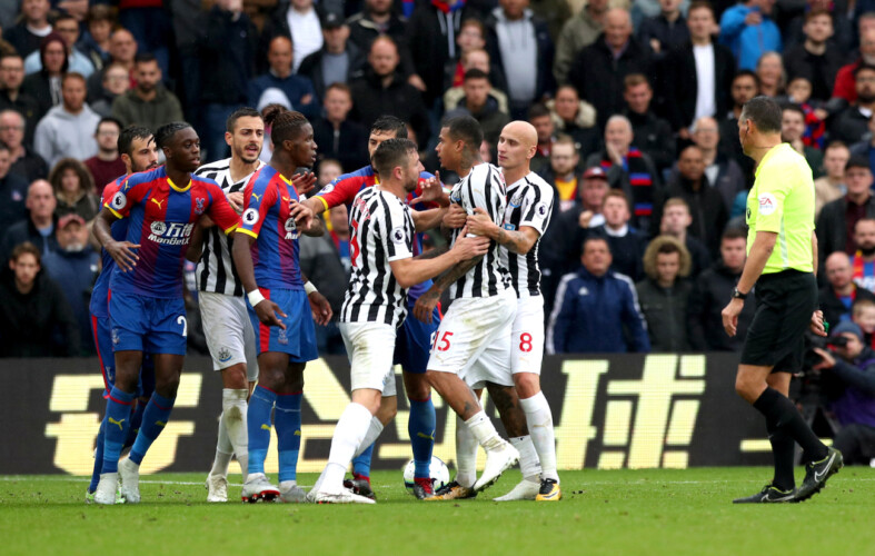 Crystal Palace’s Andros Townsend is tackled by Newcastle United’s Jonjo Shelvey (right) during the Premier League match at Selhurst Park, London.