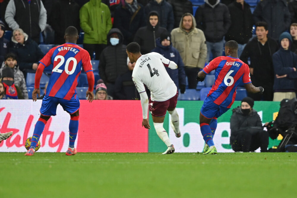 The Eagles’ vulnerability to set-pieces was again underlined for Matt Targett’s opener. The flight of Ashley Young’s corner was misjudged by James Tomkins, starting due to an injury to Joachim Andersen, and the left-back fired a low drive past Vicente Guaita.