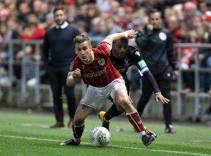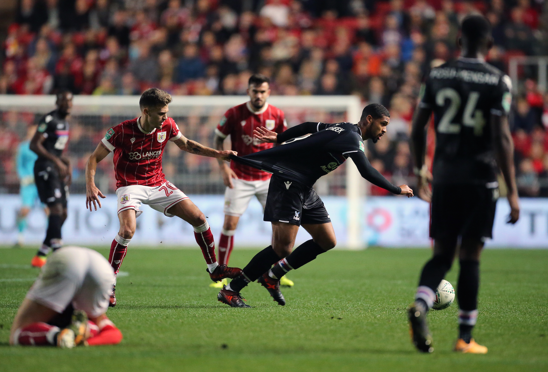 Bristol City’s Joe Bryan (left) and Crystal Palace’s Jason Puncheon battle for the ball during the Carabao Cup, Fourth Round match at Ashton Gate, Bristol.
