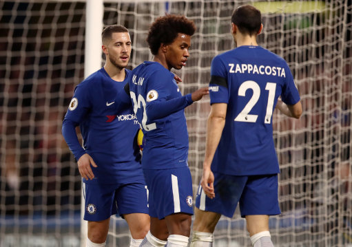 Teams: Chelsea, Courtois, Alonso, Fabregas, Kante, Hazard, Giroud, Zappacosta, Willian, Cahill, Christensen, Azpilicueta