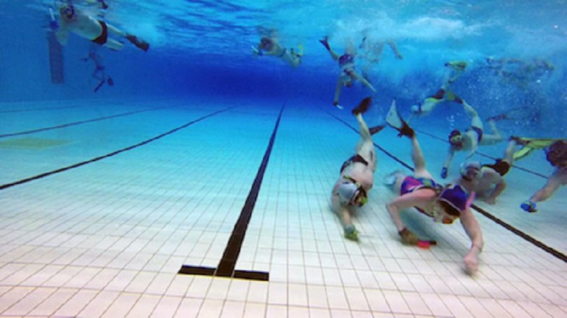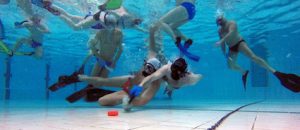 Underwater hockey is a fast-paced game, played on the bottom of a swimming pool.