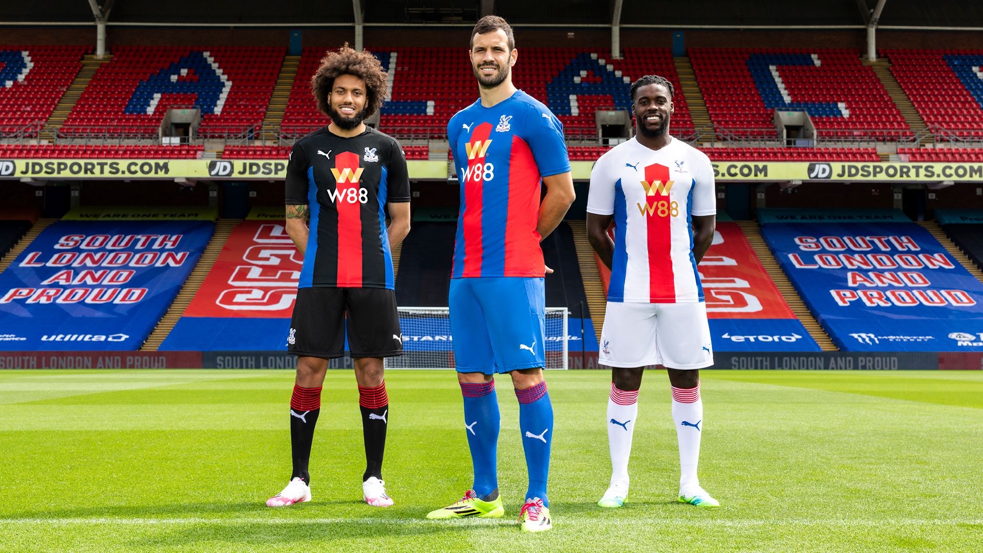 Modelled at Selhurst Park by Jordan Ayew, Christian Benteke, Luka Milivojevic, Tyrick Mitchell, Jairo Riedewald, Jeffrey Schlupp and Joel Ward – as well as new signing Nathan Ferguson showing off the home strip – the three eye-catching kits follow a symmetrical design pattern for the first time since the promotion campaign of 2012-13.