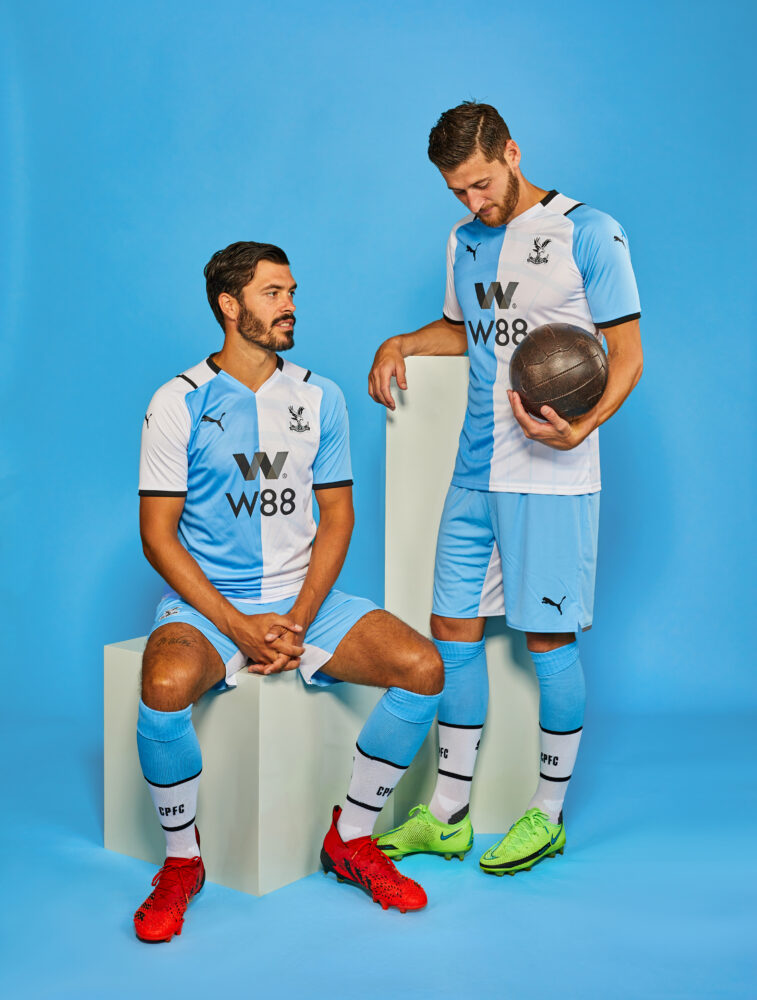 The sky blue and white shirt is based on the design worn by the first ever team from the Crystal Palace club, which was originally set up by cricketers who wanted to stay fit in the winter months.