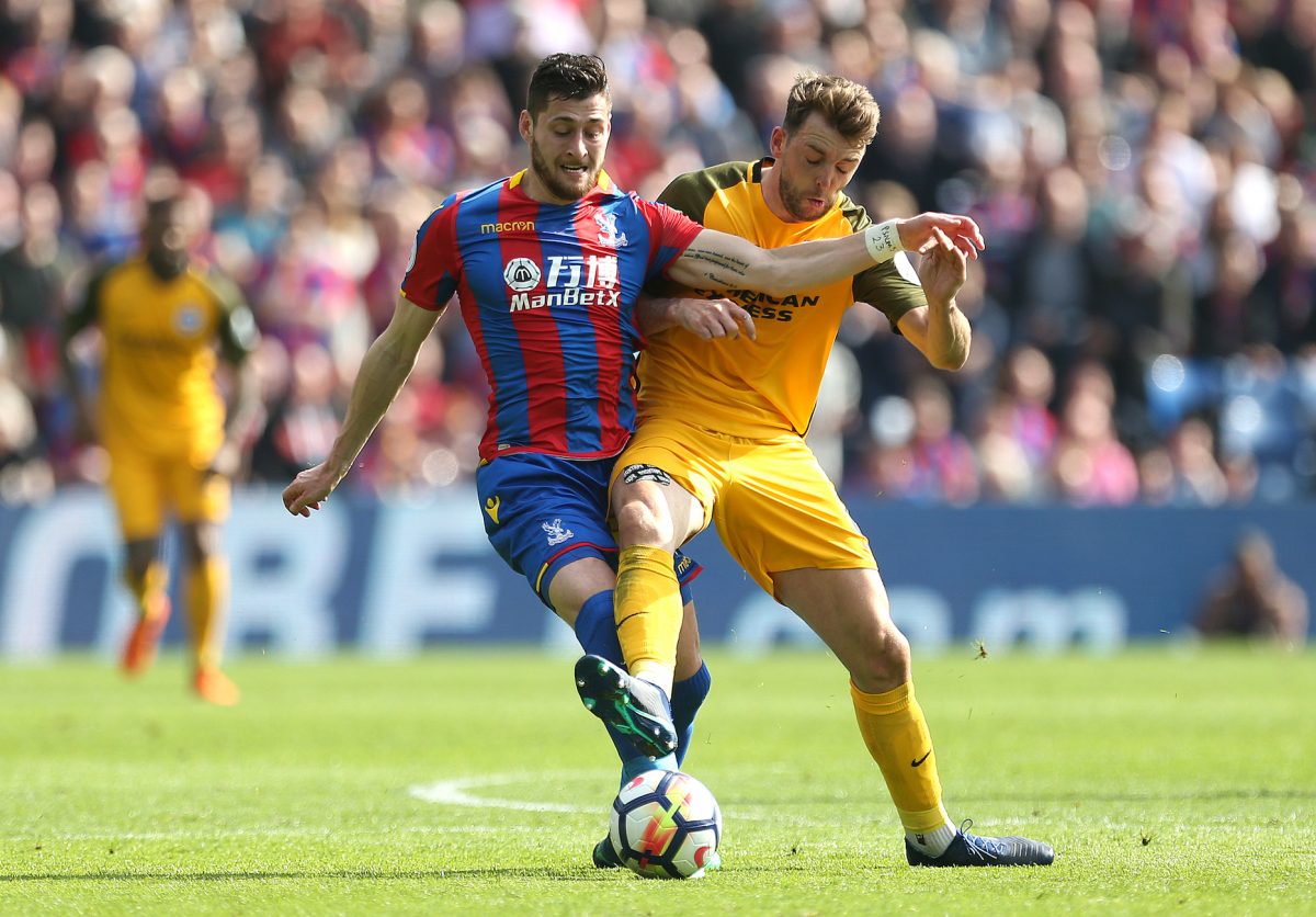Former Leicester man Jeffrey Schlupp makes the bench for Palace having recovered from the injury that saw him limp off early in the 2-0 victory at Huddersfield Town on March 17.