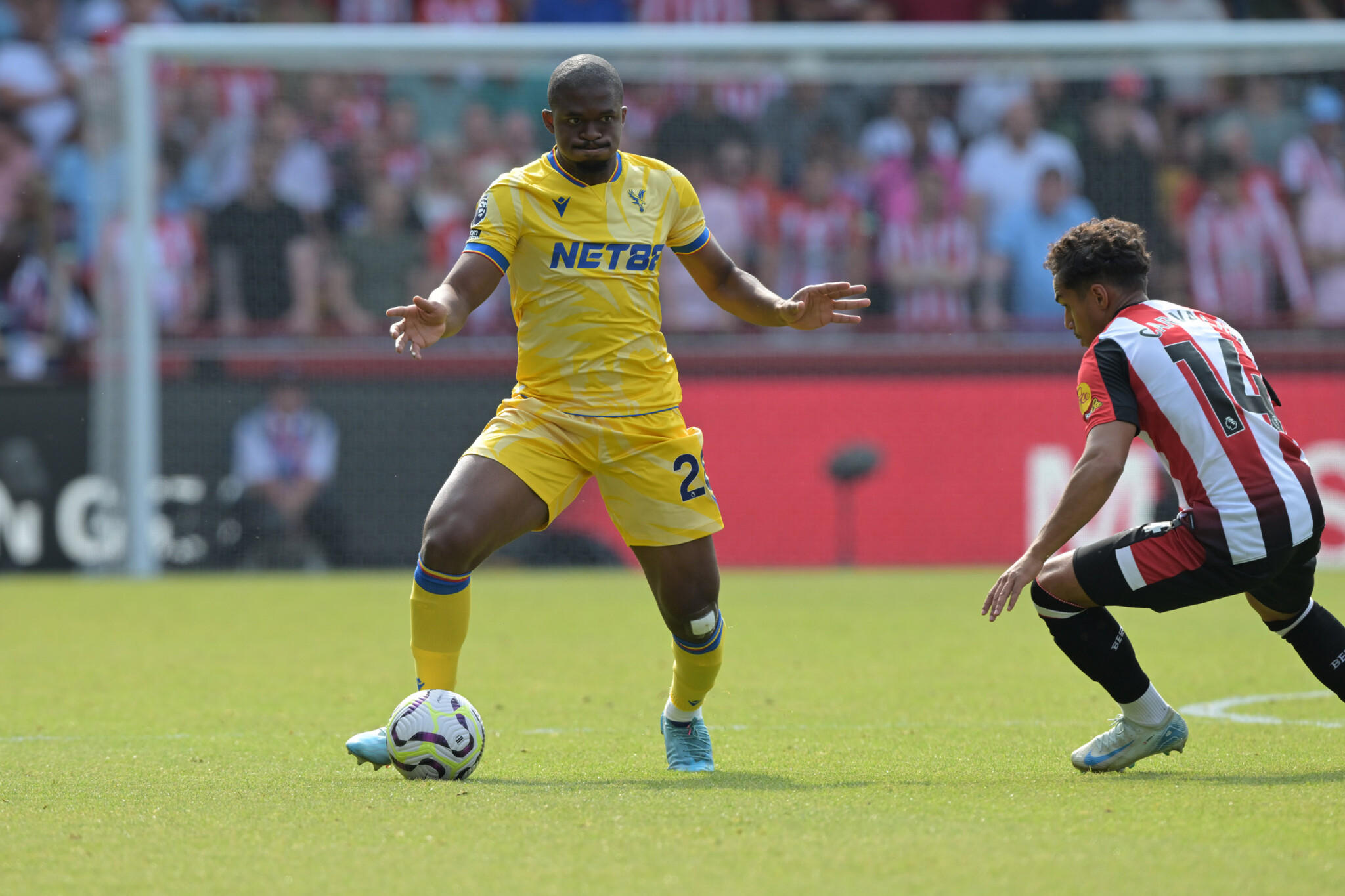 Palace: Henderson, Munoz, Riad, Guehi, Clyne, Mitchell, Hughes, Doucoure, Kamada, Eze, Mateta.