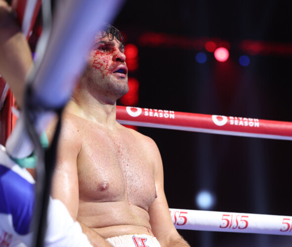 Referee John Latham called a halt to the Dubois-Hrgovic fight on the doctor’s advice with the previously unbeaten Croatian badly cut above both eyes.