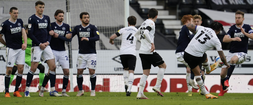 Derby were getting some joy down Millwall’s left hand side with Nathan Byrne twice whipping in good crosses for Craig Forsyth, who had a significant height advantage over Mahlon Romeo. The Scotland international came close to opening the scoring on both occasions in the opening 20 minutes.