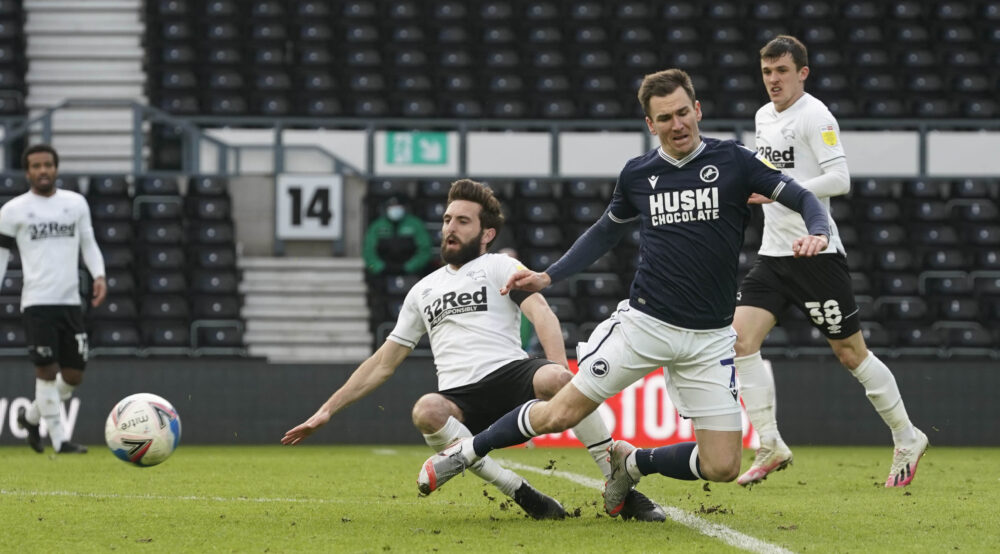 Derby County 0 Millwall 1 – Hutch header sees Lions claim seventh away Championship win of the season