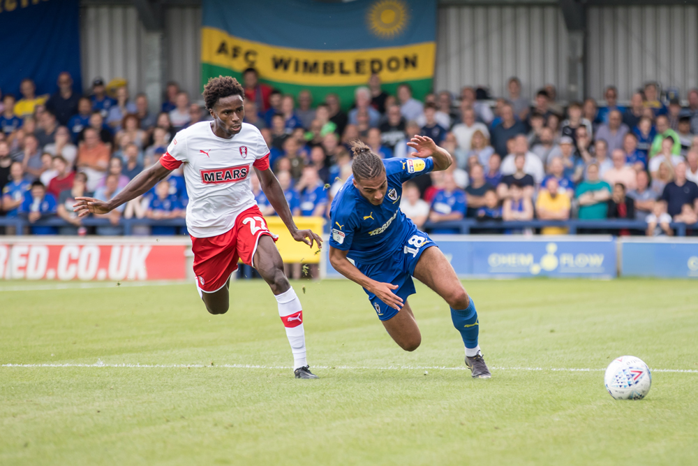 AFC Wimbledon (3-5-2) Tzanev 7, O’Neill 7, Thomas 6 (Appiah 85), Kalambayi 7, McDonald 6, Guinness-Walker 7, Nightingale 7, Hartigan 6(McLoughlin 80), Reilly 7, Folivi 6(Connolly 83), Pigott 7. Subs not used: McDonnell, Wagstaff, Pinnock, Rudoni