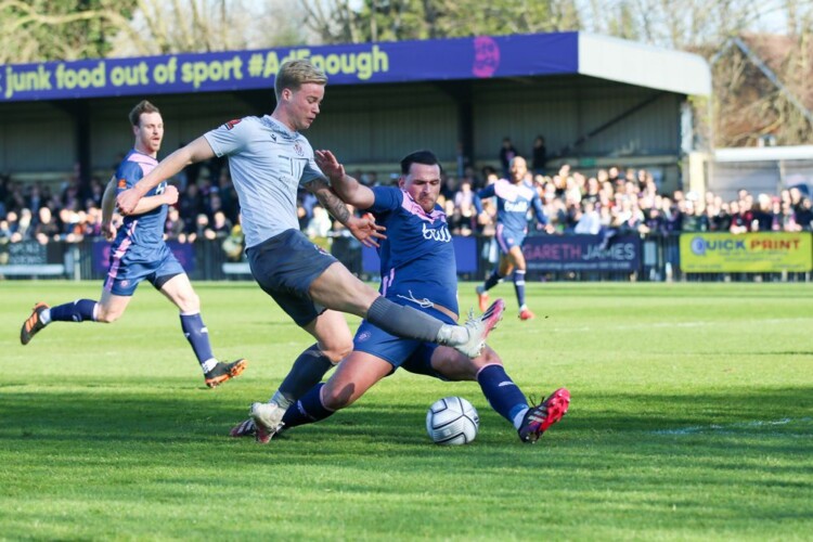 Ronnie Vint is banned after receiving a second yellow card late on against Slough.