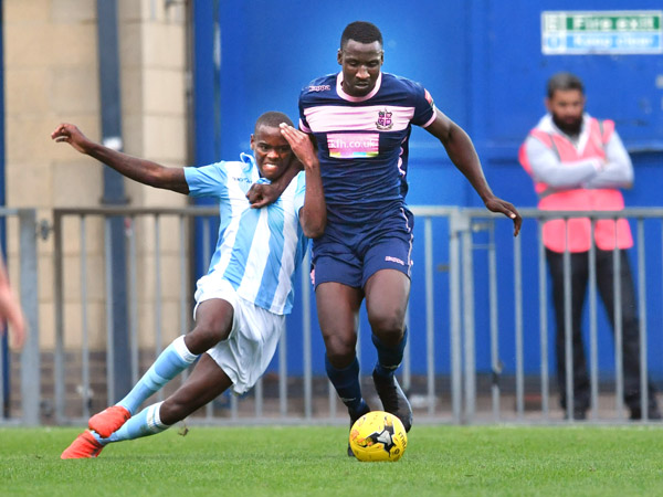 Ibrahim Kargbo serves a three-match ban for his dismissal for a late challenge on Wingate’s Claudio Vilcu.