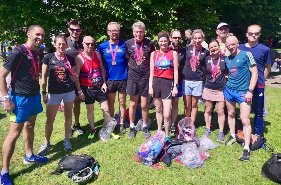 Marta Miaskiewicz was the first of the ladies team (38:53) just edging out Hayley Seddon (38:56). Yvette Dore was close to her 10 km best in 41:55. Belinda Cottrill clocked a PB of 42:08. Emma Ibell paced her 43:25 run well and Charlotte Sanderson made an excellent debut for the club (44:51) – taking over 90 seconds off her PB and finishing just behind Katie Styles (44:50). Claire Steward was second in the W65-plus category (54:05).