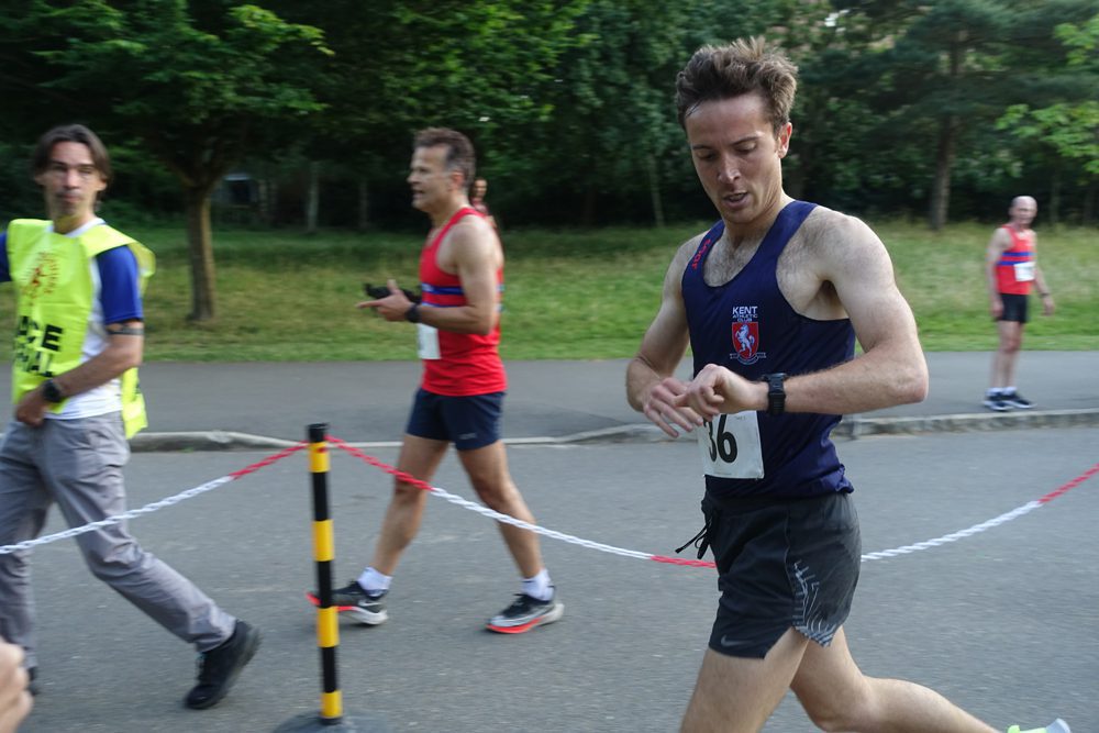Adrian Lowther ran a measured final leg in 5:01 to secure Kent AC men the race in 14:47. Ben Howe (4:53) of Dulwich gradually reeled in his Herne Hill rival Ross Brown (5:04) on the final lap to place second (15:00), with Herne Hill taking a comfortable third (15:05).