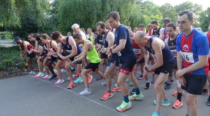 Kent AC’s mixed team of Richard Giles, Bryony Procter and Calum Fraser (15:37) had just too much to beat a promising debut from Dulwich Runners’ newbies team of Eve Wilde (5:26 – the fastest female on the night), Rob Archer and Luca Constante (16:08) and a strong all round performance from Windrush Tri’s team of James Naldrett, Sophie Roberts and Simon Sowerby (16:21).