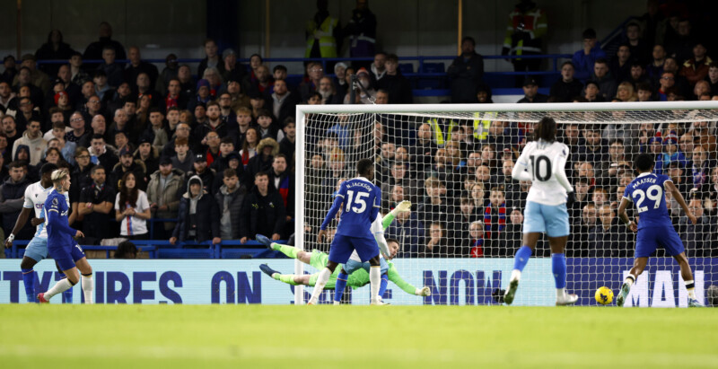 A quick counter-attack by the Blues almost reaped dividends – their first of the game when Ian Maatsen broke through the Palace rearguard, he poked the ball, fed by Mykhailo Mudryk, past Dean Henderson but Tyrick Mitchell was able to get back and clear the ball before it crossed the line.