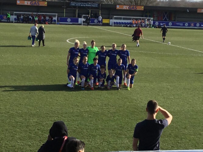 Against the run of play the Blues made it 2-0 six minutes from the end of the half. Jonna Eriksson saw the space to run in to and let fly from 25 yards and her left footer completely flummoxed Peyraund-Magnin and the ball zipped into the back of of the net.