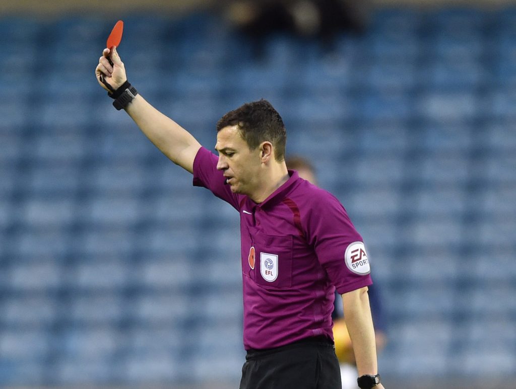 The Lions winger was sent off in the 59th minute by referee Tony Harrington following a late tackle on Tom Flanagan.