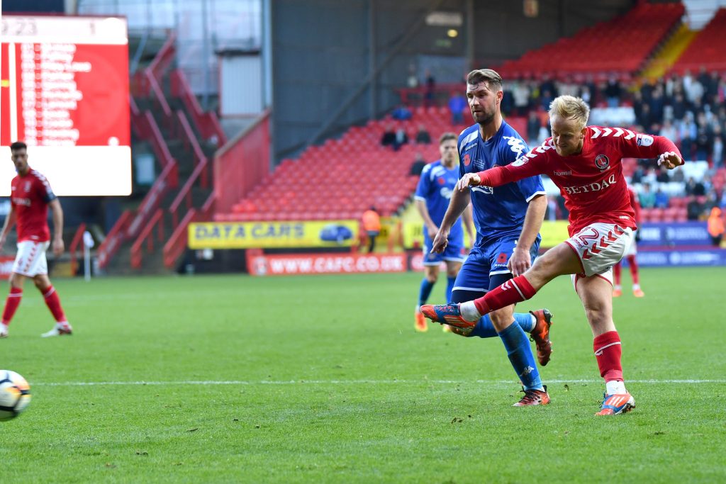 Holmes, meanwhile, was a constant nuisance for City and his chest control set up Reeves’ pass for a vicious right-footed volley which dipped narrowly over the bar. Charlton’s eager beaver closed the first half by picking himself up after being fouled by Connor Riley-Lowe and bringing the best out of McHale with a wickedly dipping free-kick, awkwardly parried by the startled keeper.