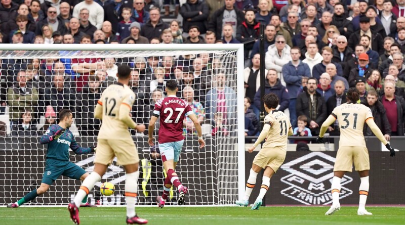 Incredibly West Ham almost equalised on 25 minutes when Jarrod Bowen was allowed by Marc Cucurella to slide in a ball from the byline. Michail Antonio was on hand to flick the ball goal-bound from close range, but Kepa did well to react and parry the ball clear.