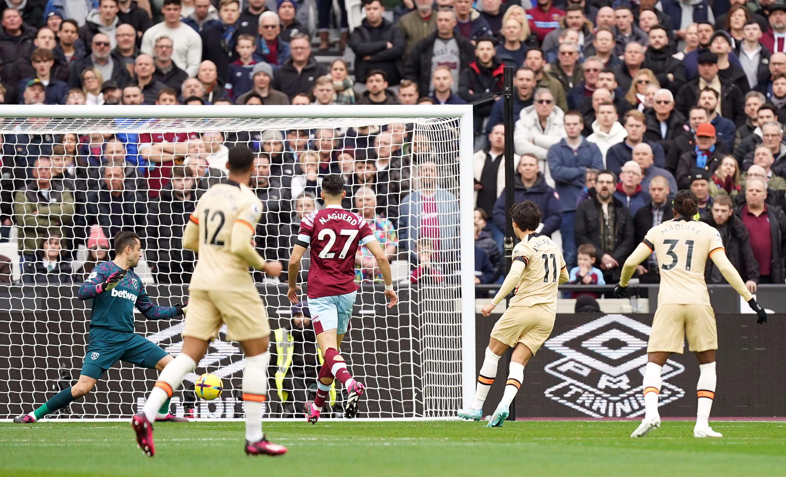 But it only gave a brief respite from the pressure the Blues put on them, and on 17 minutes, Enzo clipped in the perfect defence-splitter and Felix was on hand to tap home a simple right-footed volley that sailed past the hapless Fabianski to give the visitors the lead.