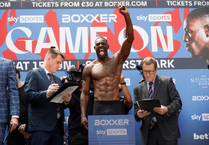 An equally fiery undercard weigh-in saw clashes between Ben Whittaker and Ezra Arenyeka, who meet for the IBF International light-heavyweight crown, and British cruiserweight rivals Isaac Chamberlain, from Brixton, and Jack Massey, who fight for the European and Commonwealth titles.