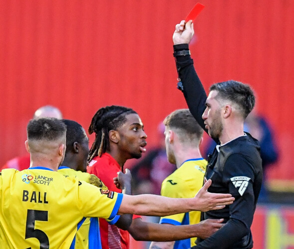 However, the momentum changed when with 17 minutes remaining the referee deemed a tackle by Dominic Odusanya to be too forceful. He was shown a red card and Welling manager Rod Stringer reacted by replacing Abrahams with midfielder Jason Adigun for his Wings debut. It was a tough baptism for the Charlton Athletic loanee as he had to play in a wide position rather than his favoured central midfield but he showed glimpses of what he might bring to the club.