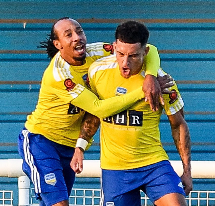 Main Pic: Taylor Maloney celebrates with provider Stefan Payne