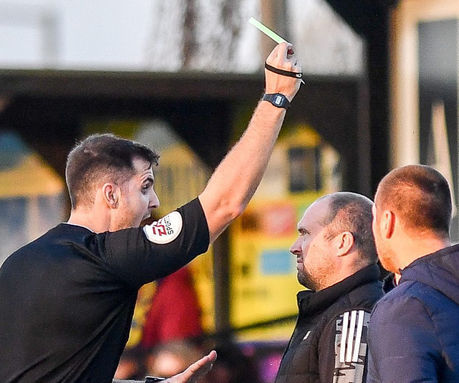 Two minutes later, Nelson and Ryan Blackman challenged for a loose ball on the edge of the penalty area and the referee deemed the Woking loanee to have fouled the former Welling captain and showed him a second yellow card.