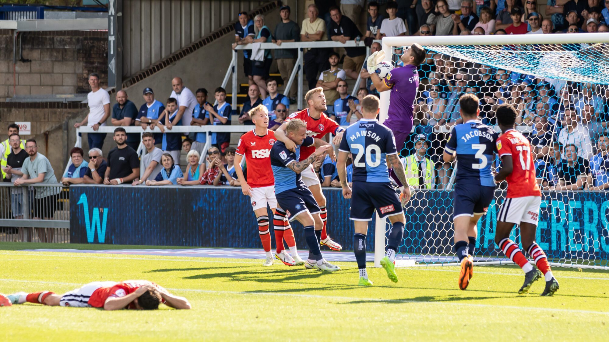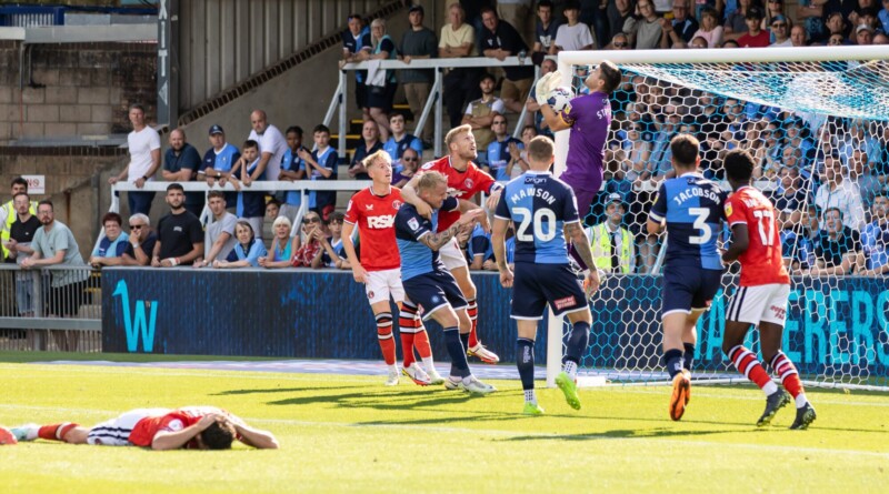 Thankfully, they were level barely 60 seconds later as Jesurun Rak-Sakyi powered Charlie Kirk’s centre into the roof of the net. But it was to be the hosts who enjoyed the better of what remained of the first-half – with Joe Wollacott forced into a string of important saves.